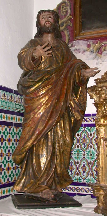 En nuestra sede canónica existen tres representaciones del discípulo amado: un lienzo atribuido a Juan del Castillo, en el que aparece sentado, ante la visión de la mujer que se describe en su libro de las Revelaciones o Apocalipsis. También se le representa de forma escultórica en una imagen anónima del siglo XVIII, en la que se le representa de pie junto a la Cruz, en el Calvario. Finalmente, también se le representa sedente en una imagen realizada por Rafael Barbero Medina en 1977 para una de las esquinas de la canastilla del paso procesional de Nuestro Padre Jesús Nazareno.
