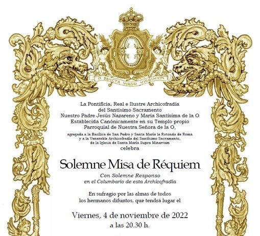 El próximo viernes 4 de noviembre de 2022, Solemne Misa de Réquiem por Nuestros Hermanos Difuntos