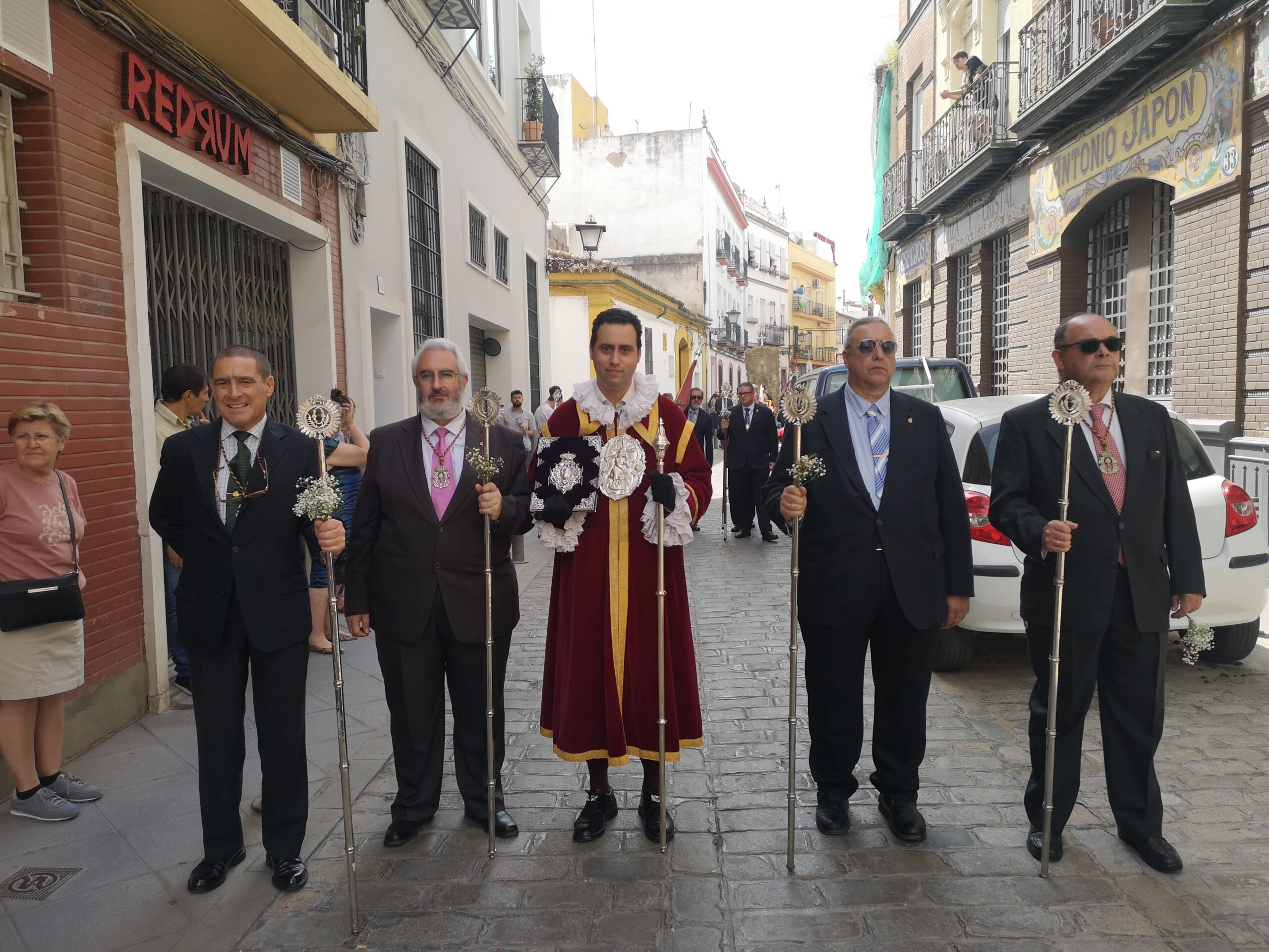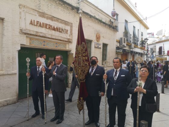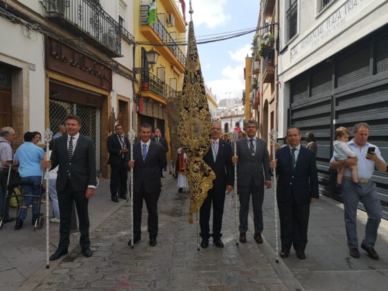 Un año más nos hemos sentido muy honrados con la participación de las representaciones de la Hermandad del Santísimo Cristo de la Expiración (poner perfiles) y de Nuestra Señora del Carmen del Puente de Triana, que con sus estandartes y varas han contribuido a que esta procesión, que es de toda la feligresía, esté completamente identificada en sus tres hermandades.