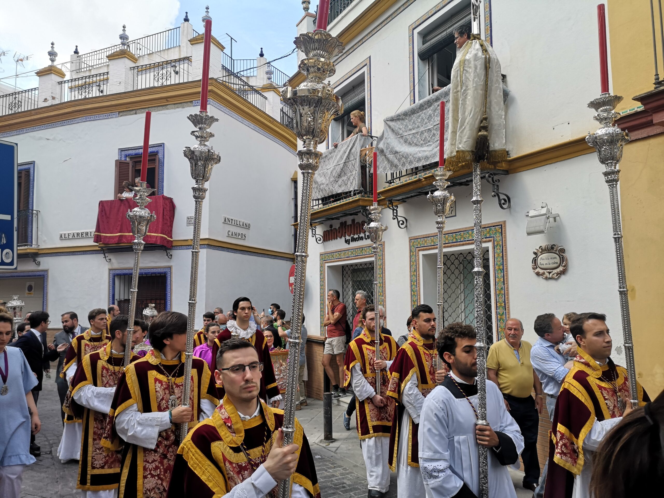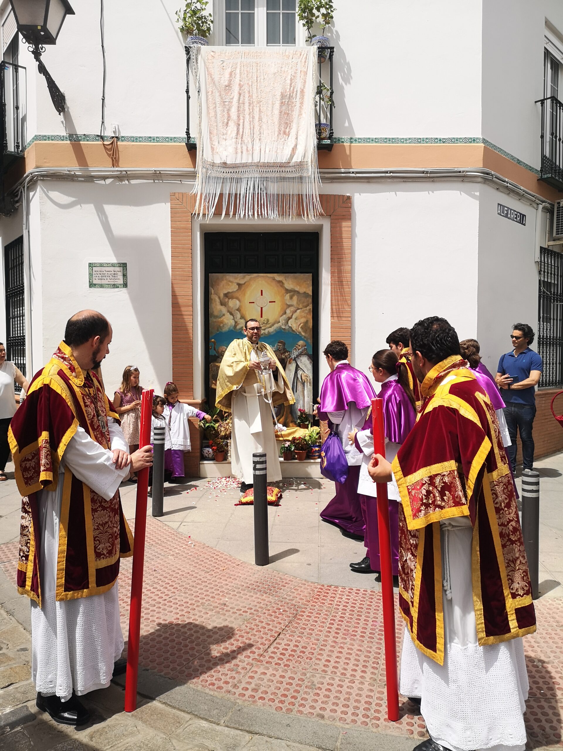 La Archicofradía Sacramental quiere agradecer a cuantas personas han adornado sus balcones con colgaduras y mantones, han instalado pequeños y sencillos altares, y han adornado los zaguanes de sus casas con macetas y flores al paso del Señor, materializando así que hoy, como desde tiempo inmemorial, ha sido un día de gran júbilo y fiesta en toda la feligresía, porque Dios mismo ha salido a visitar a aquellos hermanos nuestros a los que la enfermedad ha postrado y que no pueden acercarse con regularidad a recibir la sagrada comunión.