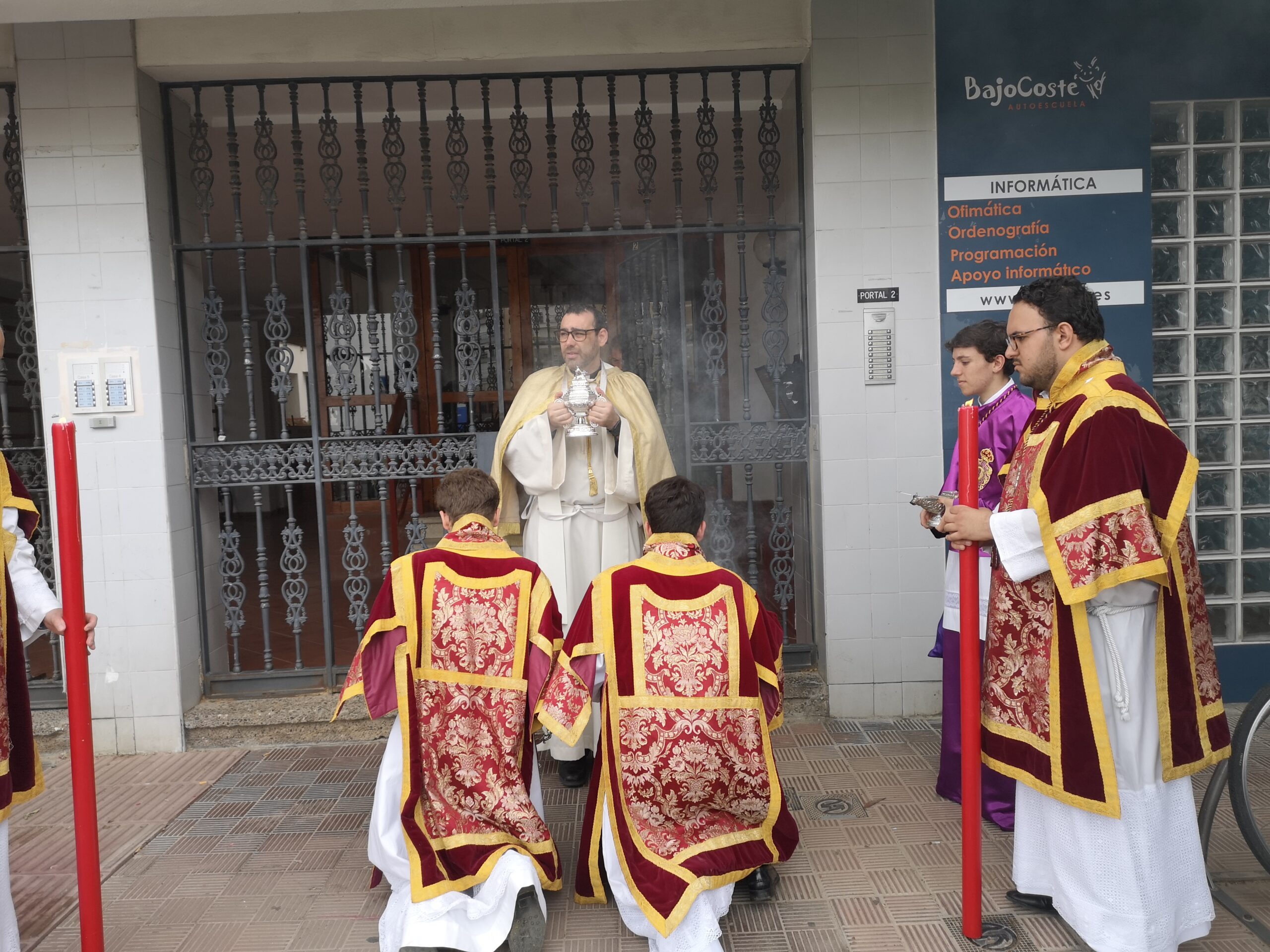 Tras la celebración de la misa parroquial, que dió comienzo a las 10:30, aquellos hermanos y feligreses que así lo han deseado, han acompañado solemnemente a Su Divina Majestad por las calles de nuestra collación, visitando a los enfermos e impedidos que así han recibido la Sagrada Comunión en cumplimiento del mandamiento pascual.