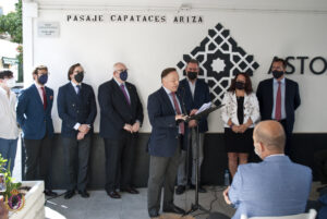En un emotivo acto presidido por el Exmo. Sr. Alcalde de Sevilla, que también ha contado con la asistencia de la Sra. Delegada del Distrito Triana, y el Sr. Teniente de Alcalde Delegado del Área de Gobernación y Fiestas Mayores, así como las representaciones del Consejo General de Hermandades y Cofradías, y numerosas hermandades vinculadas a la histórica familia de capataces, se ha descubierto el rótulo que desde ahora incluye en el nomenclátor esta vía de nueva creación. Al acto ha acudido también una amplia representación de la familia Ariza, en cuyo nombre ha intervenido D. Rafael Ariza Moreno.