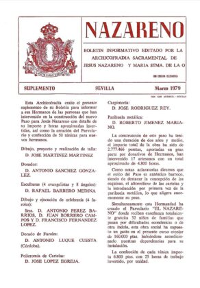 Otra de las circunstancias que, sin duda, contribuyeron a la aparición de “Nazareno” fue el impulso provocado por el “Boletín de las Cofradías de Sevilla”, editado por el Consejo General de Hermandades y Cofradías de Sevilla en 1956, mismo año en el que su primer director, Luis Joaquín Pedregal, escribía el artículo “He aquí la Cruz de Guía” para la revista “Cofradía” de nuestra Hermandad, publicación aquella que se justificaba con los mismos argumentos que nacerían los demás boletines, solo que la necesidad de comunicación, principal de ellos, era entre el órgano rector , las corporaciones y la sociedad en general, en vez de con los hermanos.