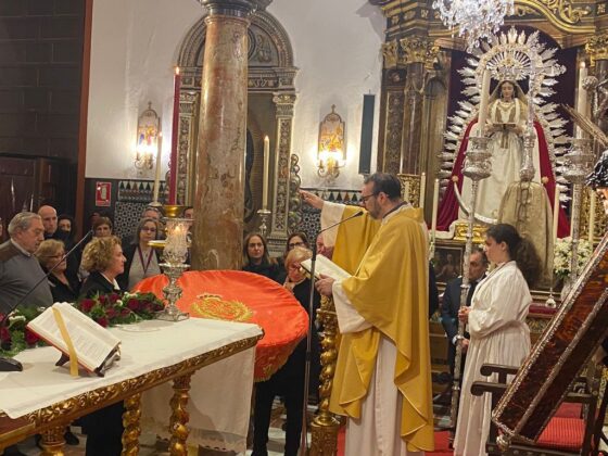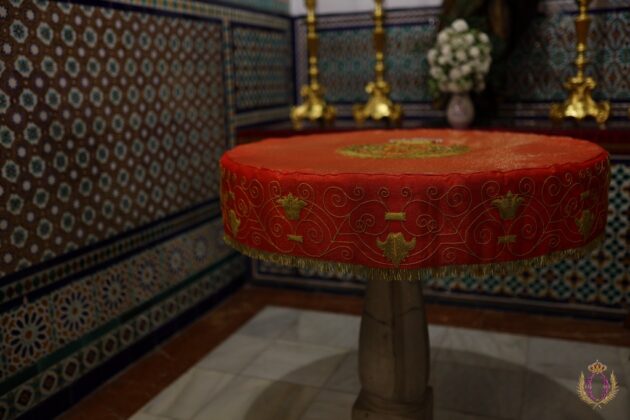Durante la celebración de la Solemne Vigilia Pascual fue bendecido por el señor cura párroco y director espiritual de la Archicofradía un nuevo paño ricamente bordado en oro a realce que en adelante cubrirá la pila bautismal.