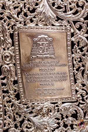 En definitiva, las formas de una tipología ya clásica y con honda tradición como es el lábaro, y la búsqueda de correspondencia ornamental con elementos propios del paso de palio son las líneas fundamentales que articulan la insignia conmemorativa de la Coronación Canónica de María Santísima de La O.