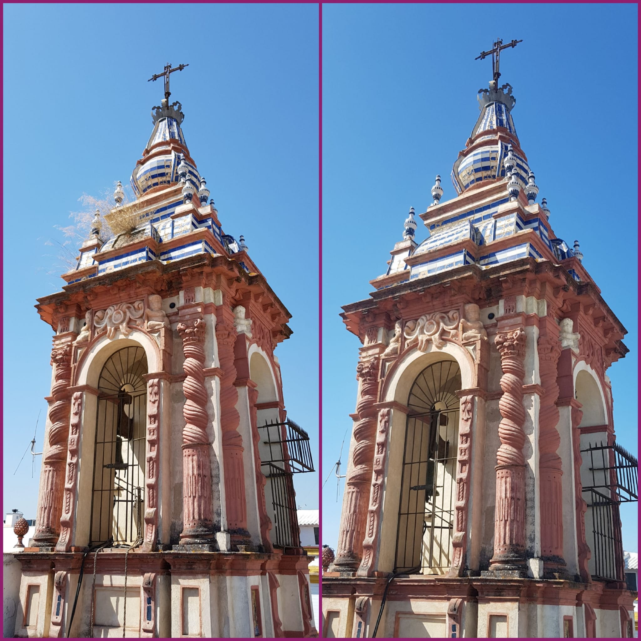 Por lo que respecta al campanario de la torre, se ha eliminado la vegetación que había crecido en algunas zonas del chapitel y que amenazaban la buena conservación del mismo, consolidándose y fijándose algunas piezas cerámicas que estaban sueltas.
