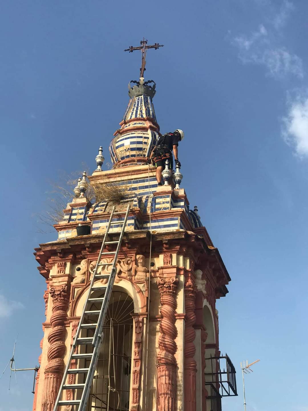 De igual modo, aprovechando las tareas de mantenimiento, se ha procedido a limpiar el interior del campanario, retirando algunas sogas inservibles y suciedad acumulada.