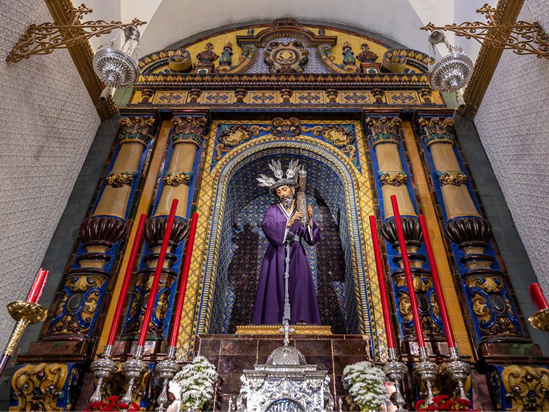 En esta capilla recibe culto la imagen de Nuestro Padre Jesús Nazareno, uno de los titulares de la Hermandad de La O. Permanezca en este punto para escuchar su descripción.