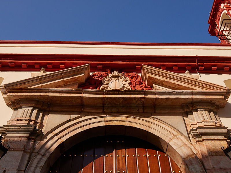 De líneas elegantes, está realizada en mármoles negros y encarnados. Se trata de una pieza labrada por Antonio Gil Gataón, que se dispone a partir de dos pilastras toscanas con sus correspondientes traspilastras que enmarcan el arco, todo ello sobre podios y a las que superponen dados de entablamento con el consiguiente triglifo. El remate se efectúa mediante un frontón triangular y roto que cobija una cartela con el escudo de La O timbrado de corona y flanqueado de dos figuras infantiles labradas en argamasa.